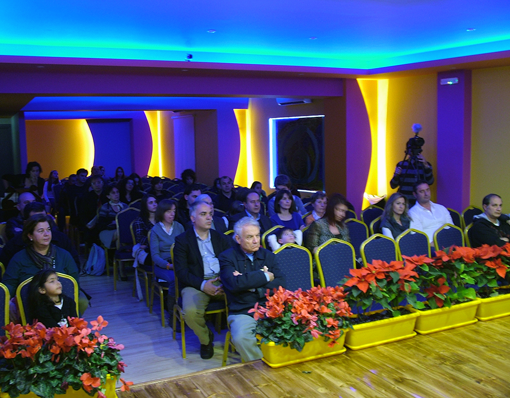 Το Σάββατο 21 Δεκεμβρίου 2013, στις 18:00, στην μεγάλη αίθουσα Συναυλιών "ΘΟΔΩΡΟΣ ΑΝΤΩΝΙΟΥ" του ΩΔΕΙΟΥ ΤΩΝ ΧΡΩΜΑΤΩΝ, πραγματοποιήθηκε η 2η Χριστουγεννιάτικη Συναυλία μας. Οι καθηγητές κ. Λίλη Δάκα - πιάνο, κ. Μιχάλης Σπυριδάκης - βιολί, και κ. Μαρία Αλεξάκη - φλάουτο παρουσίασαν όλη την μουσική πορεία των μαθητών τους, μικρών αλλά και μεγαλύτερων, από το Σεπτέμβριο έως και σήμερα. Την εκδήλωση αυτή, τίμησε με την παρουσία του, ο Διευθυντής Σπουδών του Ωδείου των χρωμάτων, ο διεθνούς φήμης και αναγνώρισης Συνθέτης - Μαέστρος, Ομότιμος καθηγητής του Πανεπιστημίου της Βοστώνης και Πρόεδρος της Ένωσης Ελλήνων Μουσουργών κος Θόδωρος Αντωνίου. |