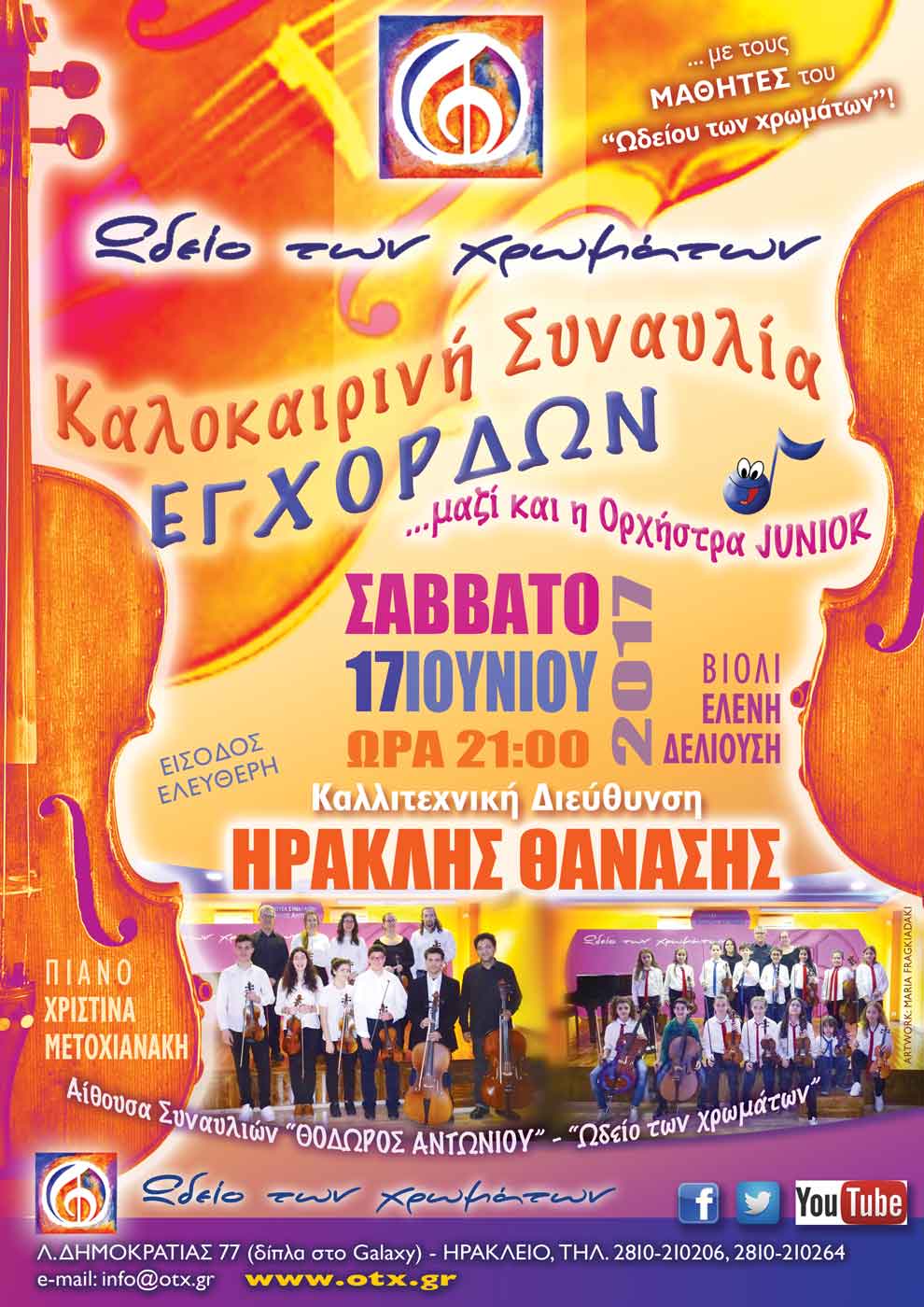 3 ΞΕΧΩΡΙΣΤΕΣ καλοκαιρινές βραδιές με τα Μουσικά Σύνολα του "Ωδείου των χρωμάτων"!!!Σάββατο 17 Ιουνίου, στις 21:00: Μουσικό Σύνολο ΕΓΧΟΡΔΩΝ & Ορχήστρα JUNIOR!