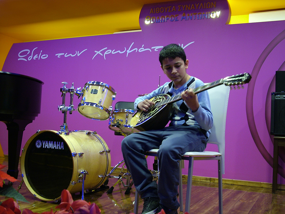 Την Κυριακή 22 Δεκεμβρίου 2013, στις 18:30, στην μεγάλη αίθουσα Συναυλιών "ΘΟΔΩΡΟΣ ΑΝΤΩΝΙΟΥ" του ΩΔΕΙΟΥ ΤΩΝ ΧΡΩΜΑΤΩΝ, πραγματοποιήθηκε η 5η Χριστουγεννιάτικη Συναυλία μας. Οι καθηγητές μας, Μιχάλης Πατραμάνης - Ηλεκτρική κιθάρα, Γιάννης Παξιμαδάκης - Μπουζούκι, Βαγγέλης Τσαγκαράκης - Ευρωπαϊκά κρουστά και Κώστας Παπαδάκης - Σύγχρονο πιάνο/Αρμόνιο, παρουσίασαν μέσω των μαθητών τους, Χριστουγεννιάτικους ήχους κι όχι μόνο, οπότε μικροί και μεγάλοι απόλαυσαν ένα πλούσιο πρόγραμμα. |