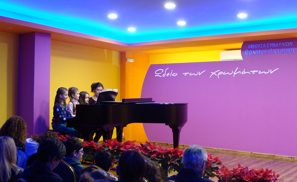 Την Κυριακή 22 Δεκεμβρίου 2013, στις 20:00, στην μεγάλη αίθουσα Συναυλιών "ΘΟΔΩΡΟΣ ΑΝΤΩΝΙΟΥ" του ΩΔΕΙΟΥ ΤΩΝ ΧΡΩΜΑΤΩΝ, πραγματοποιήθηκε η 6η Χριστουγεννιάτικη Συναυλία μας. Οι καθηγήτριες Ασπασία Καραλή - πιάνο, Εύη Καλιτσουνάκη - φλάουτο/Μουσικά σύνολα και Μαρίνα Δασκαλάκη - πιάνο, παρουσίασαν τη μουσική εξέλιξη των μαθητών τους, μικρών αλλά και μεγαλύτερων, από το Σεπτέμβριο 2013 έως και σήμερα. Και την τελευταία αυτή για φέτος, Χριστουγενιάτικη Συναυλία, τίμησε με την παρουσία του, ο Διευθυντής Σπουδών του Ωδείου των χρωμάτων, ο διεθνούς φήμης και αναγνώρισης Συνθέτης - Μαέστρος, Ομότιμος καθηγητής του Πανεπιστημίου της Βοστώνης και Πρόεδρος της Ένωσης Ελλήνων Μουσουργών κος Θόδωρος Αντωνίου. |