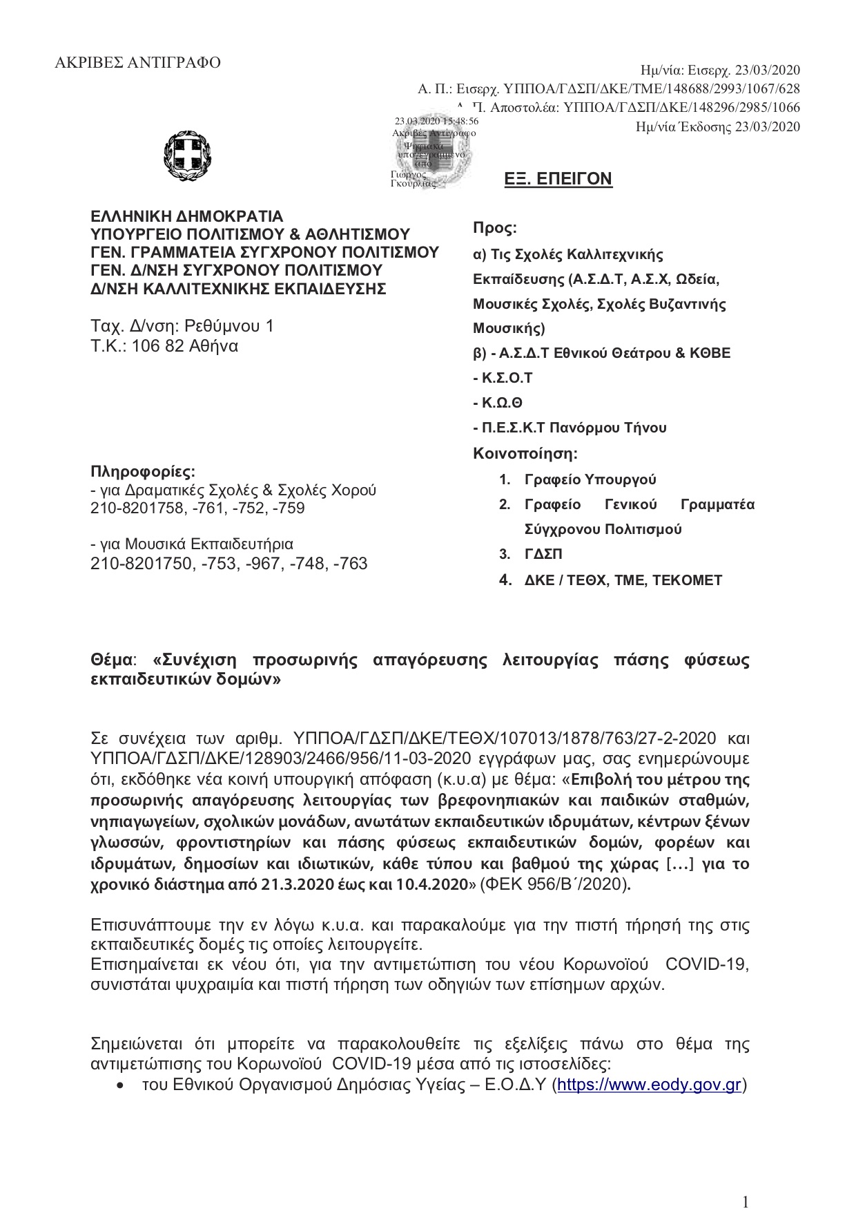 ΣΥΝΕΧΙΣΗ ΑΠΑΓΟΡΕΥΣΗΣ ΠΑΣΗΣ ΦΥΣΕΩΣ ΕΚΠΑΙΔΕΥΤΙΚΩΝ ΔΟΜΩΝΣύμφωνα με την Εγκύκλιο, Απόφαση του Υπουργείου Πολιτισμού & Αθλητισμού, τα Ωδεία ΣΥΝΕΧΙΖΟΥΝ να παραμένουν ΚΛΕΙΣΤΑ από 21 Μαρτίου έως και 10 Απριλίου 2020 (ΦΕΚ 956/Β΄/2020). Το "Ωδείο των χρωμάτων" ενημερώνει τους γονείς & μαθητές του, ότι όλα τα μαθήματα θα αναπληρωθούν!