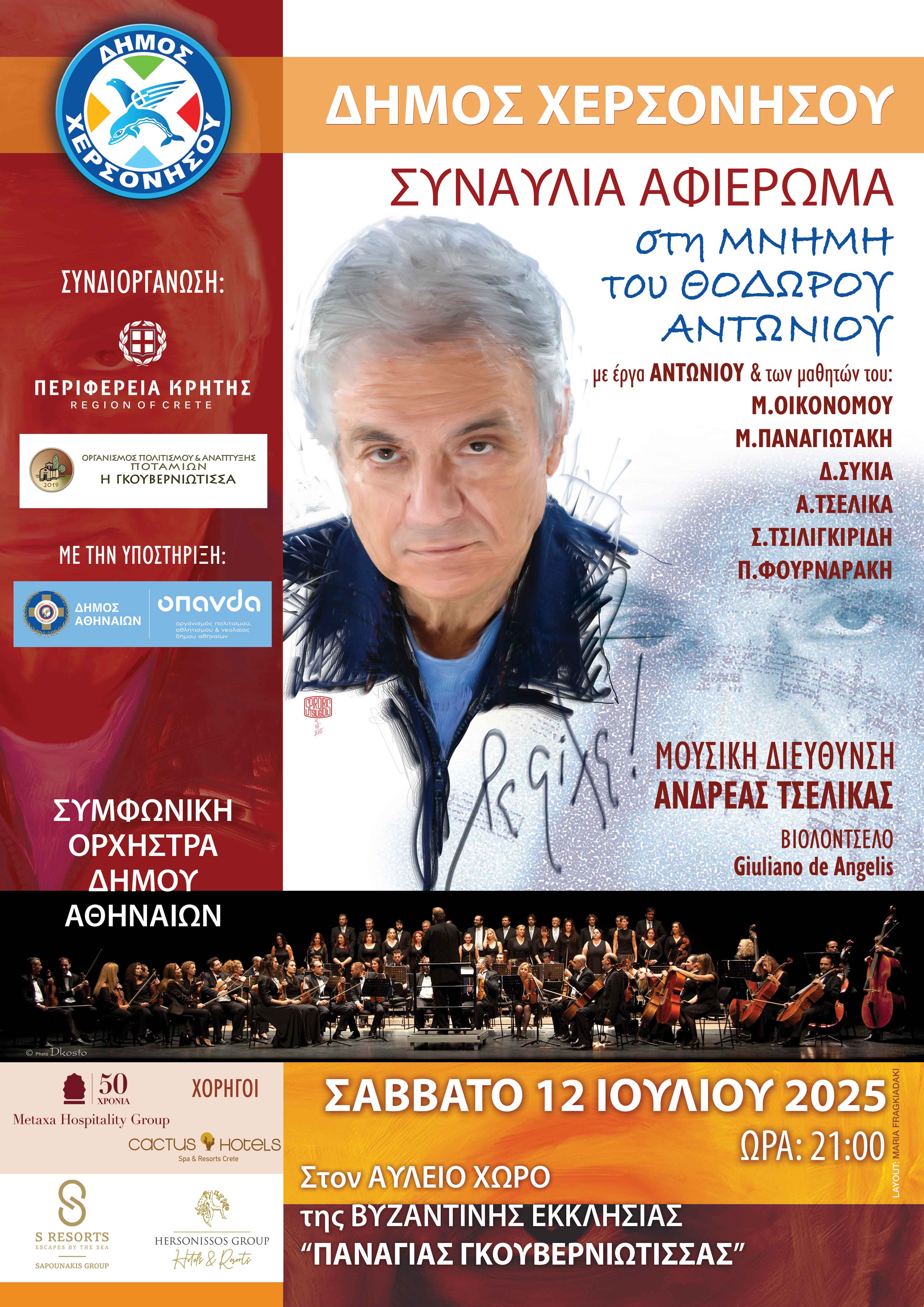 Το Σάββατο 12 Ιουλίου 2025, ώρα 21:00, στον αύλειο χώρο της Βυζαντινής εκκλησίας "Παναγίας Γκουβερνιώτισσας" πραγματοποιήθηκε Συναυλία-αφιέρωμα στο ΘΟΔΩΡΟ ΑΝΤΩΝΙΟΥ, με έργα του ίδιο καθώς και των μαθητών του: Μιχάλη Οικονόμου, Μάνου Παναγιωτάκη, Δημήτρη Συκιά, Ανδρέα Τσελίκα, Σάββα Τσιλιγκιρίδη, Παναγιώτη Φουρναράκη.
