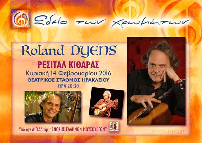 ΡΕΣΙΤΑΛ ΚΙΘΑΡΑΣ ROLAND DYENSΤΟ «Ωδείο των χρωμάτων» διοργανώνει ΡΕΣΙΤΑΛ ΚΙΘΑΡΑΣ με τον ROLAND DYENS, την ΚΥΡΙΑΚΗ 14 ΦΕΒΡΟΥΑΡΙΟΥ 2016, ΩΡΑ 20:30 στο ΘΕΑΤΡΙΚΟ ΣΤΑΘΜΟ ΗΡΑΚΛΕΙΟΥ.