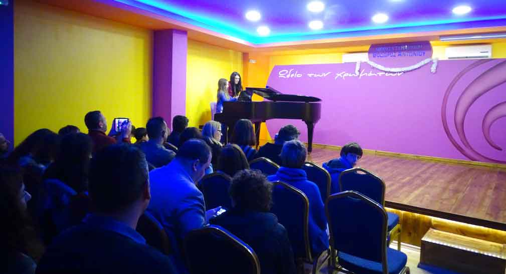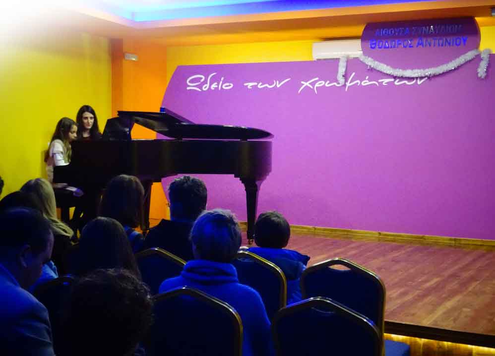 7η Χριστουγεννιάτικη Συναυλία του "Ωδείου των χρωμάτων": Συναυλία για μαθητές στο ΠΙΑΝΟ με τις καθηγήτριες ΜΑΡΙΝΑ ΔΑΣΚΑΛΑΚΗ & ΕΛΕΝΑ ΠΕΡΙΣΥΝΑΚΗ. Πραγματοποιήθηκε την Παρασκευή 22 Δεκεμβρίου 2017, στην Αίθουσα Συναυλιών "Θόδωρος Αντωνίου" του Ωδείου, στις 19:00. Πολλά συγχαρητήρια στους μαθητές & στις μαθήτριές μας!!!|