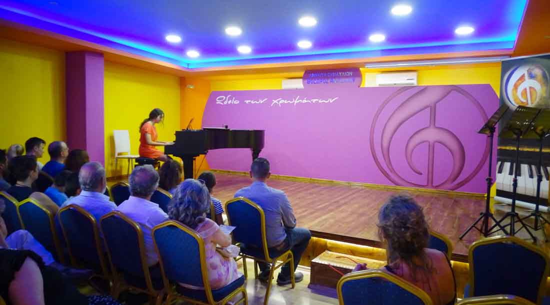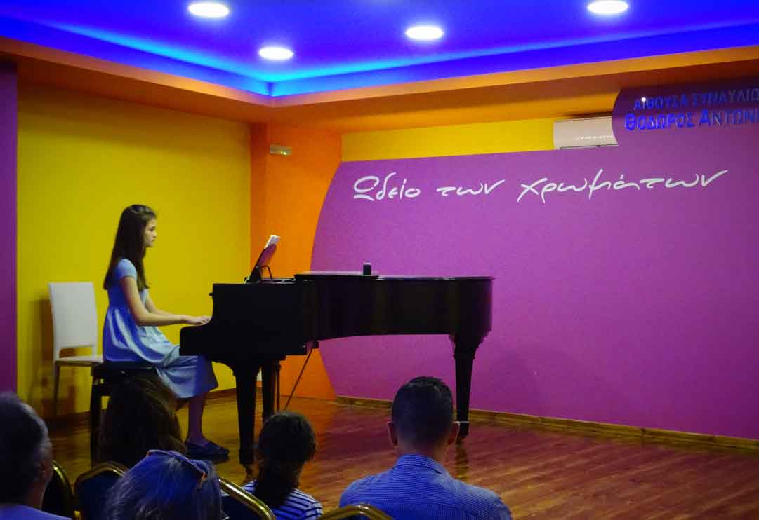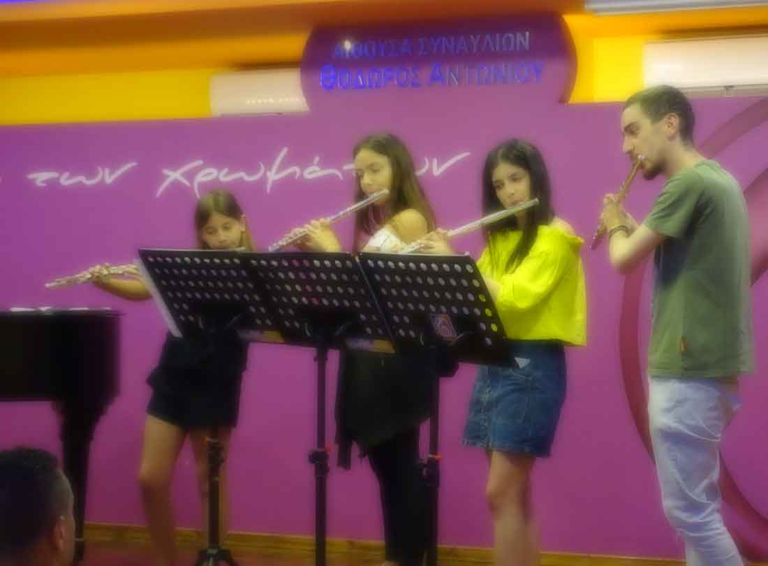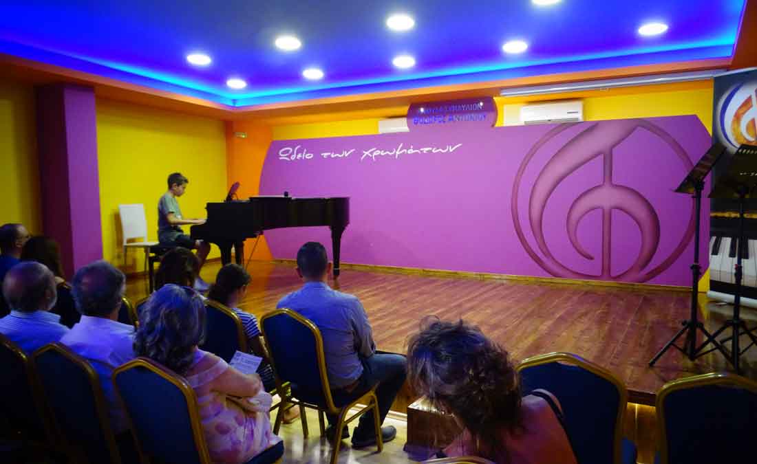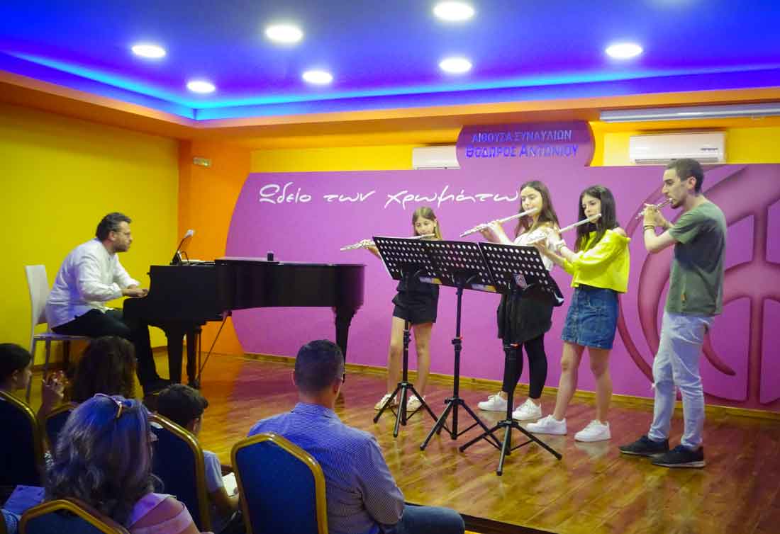Πραγματοποιήθηκε και η 5η για φέτος Καλοκαιρινή Συναυλία του "Ωδείου των χρωμάτων", την Κυριακή 10 Ιουνίου στις 12:00, με μαθητές & μαθήτριες των καθηγητών, του "Ωδείου των χρωμάτων" στο ΠΙΑΝΟ: ΑΣΠΑΣΙΑΣ ΚΑΡΑΛΗ, στο ΜΠΟΥΖΟΥΚΙ: ΑΡΗ ΚΟΥΤΕΝΤΑΚΗ & στο ΦΛΑΟΥΤΟ-ΦΛΟΓΕΡΑ: ΓΙΩΡΓΟΥ ΖΑΧΑΡΙΟΥΔΑΚΗ. |