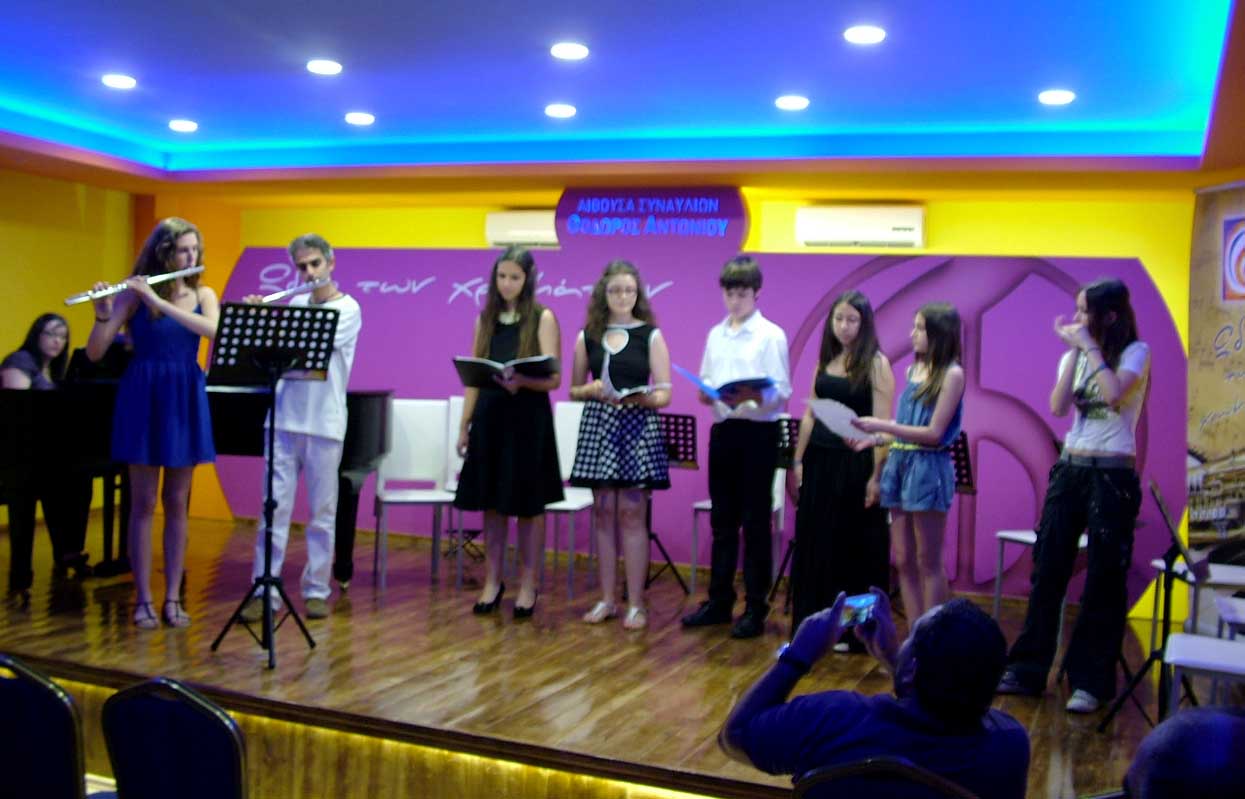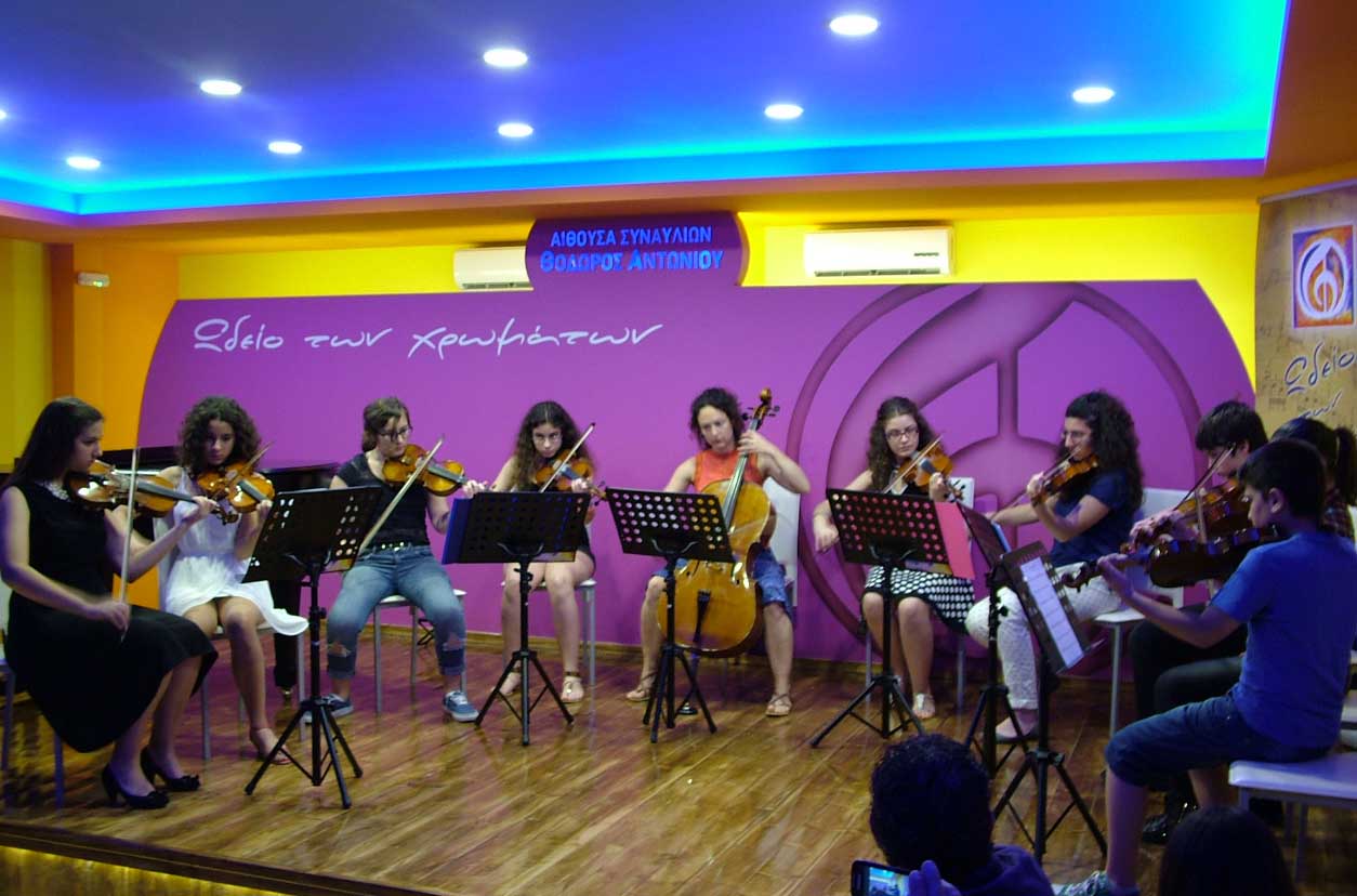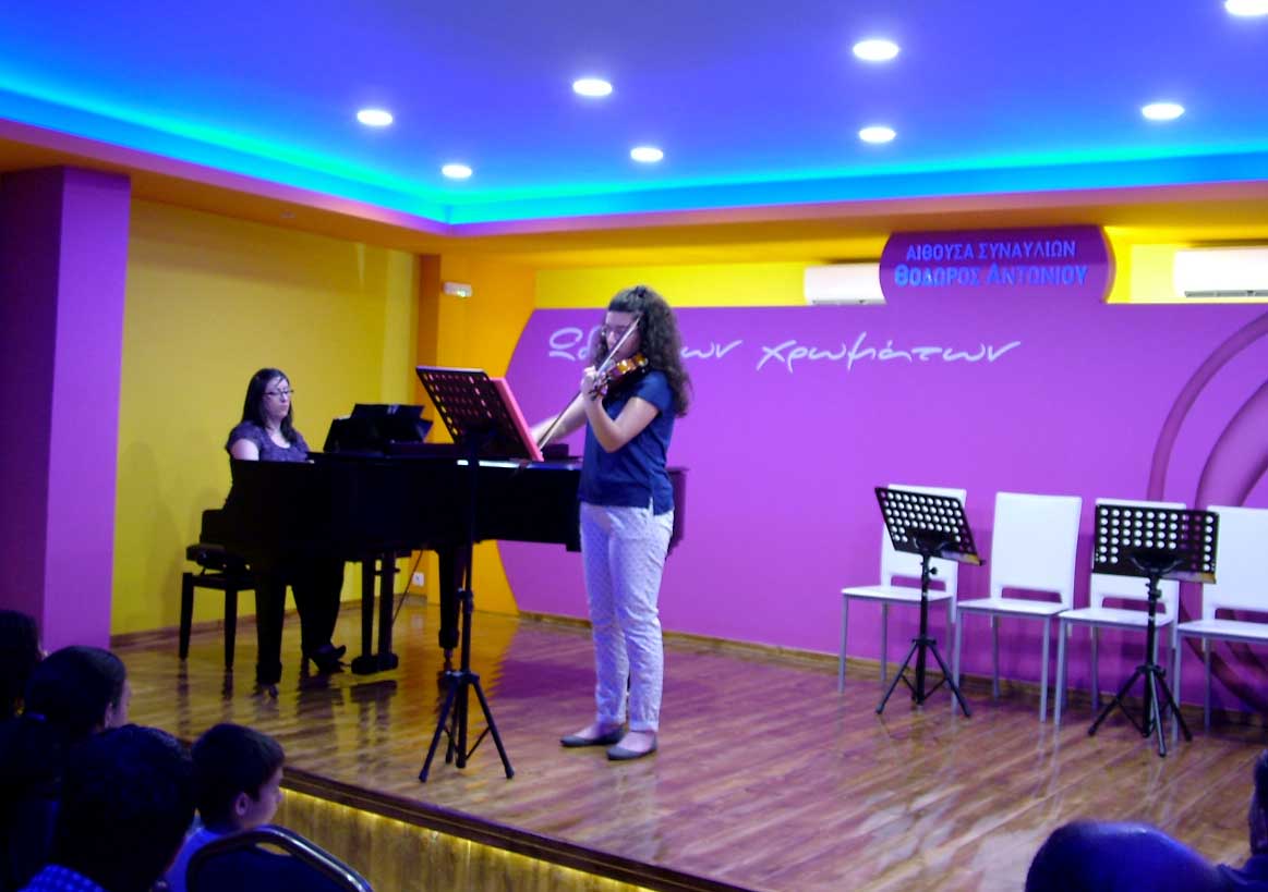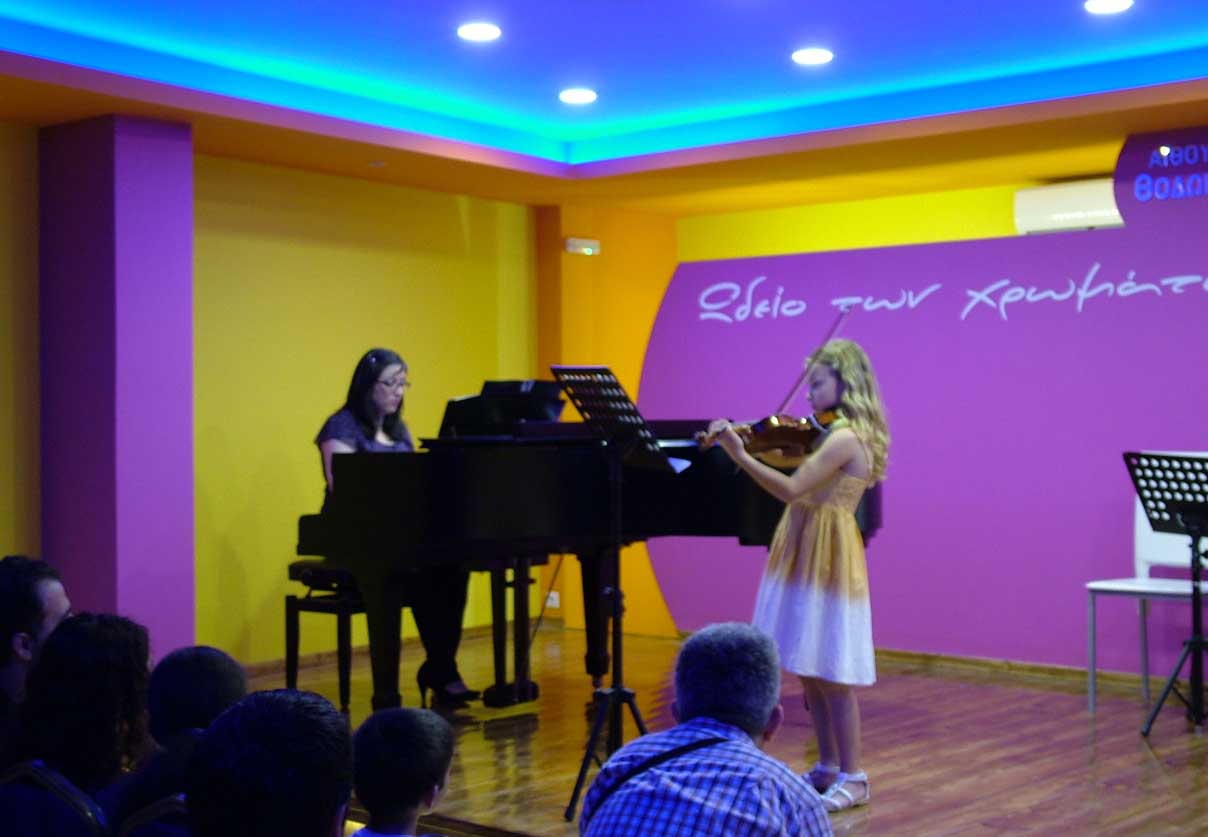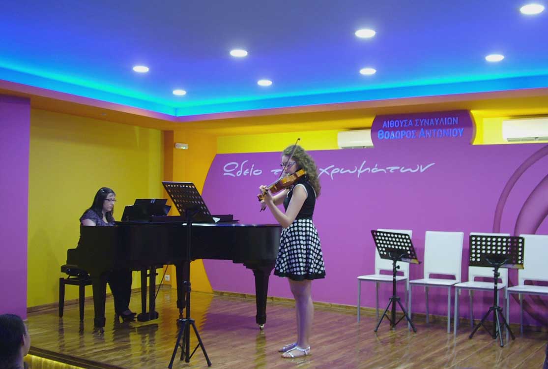 Το Σάββατο 14 Ιουνίου 2014, στις 20:00, πραγματοποιήθηκε η 2η καλοκαιρινή Συναυλία, στην μεγάλη αίθουσα Συναυλιών του "Ωδείου των χρωμάτων", με τους μαθητές & τις μαθήτριες των κ. Ηρακλή Θανάση - Βιολί/Μουσικά Σύνολα Εγχόρδων, κ. Σοφίας Ευκλείδου - Βιολοντσέλο, κ. Εύας Θανάση - Φωνητική, κ. Αλέξανδρου Γιαννή - Σαξόφωνο και κ. Μάνο Παναγιωτάκη - επιμέλεια Μουσικού Συνόλου. |