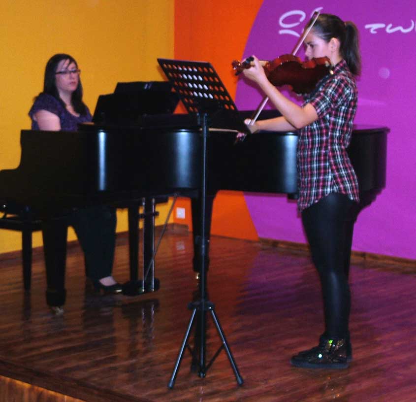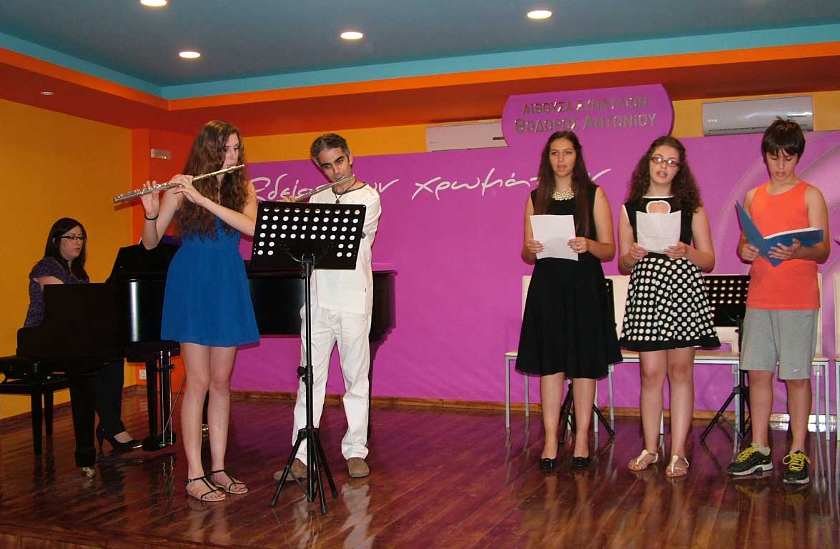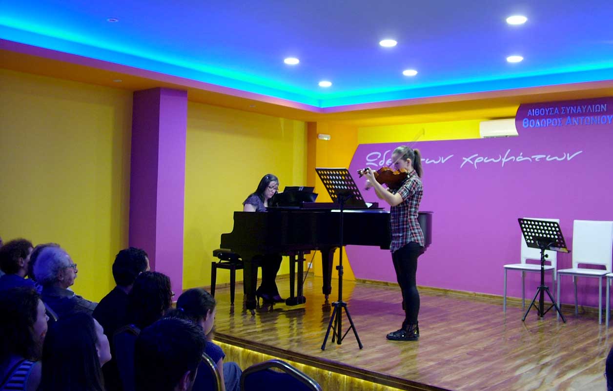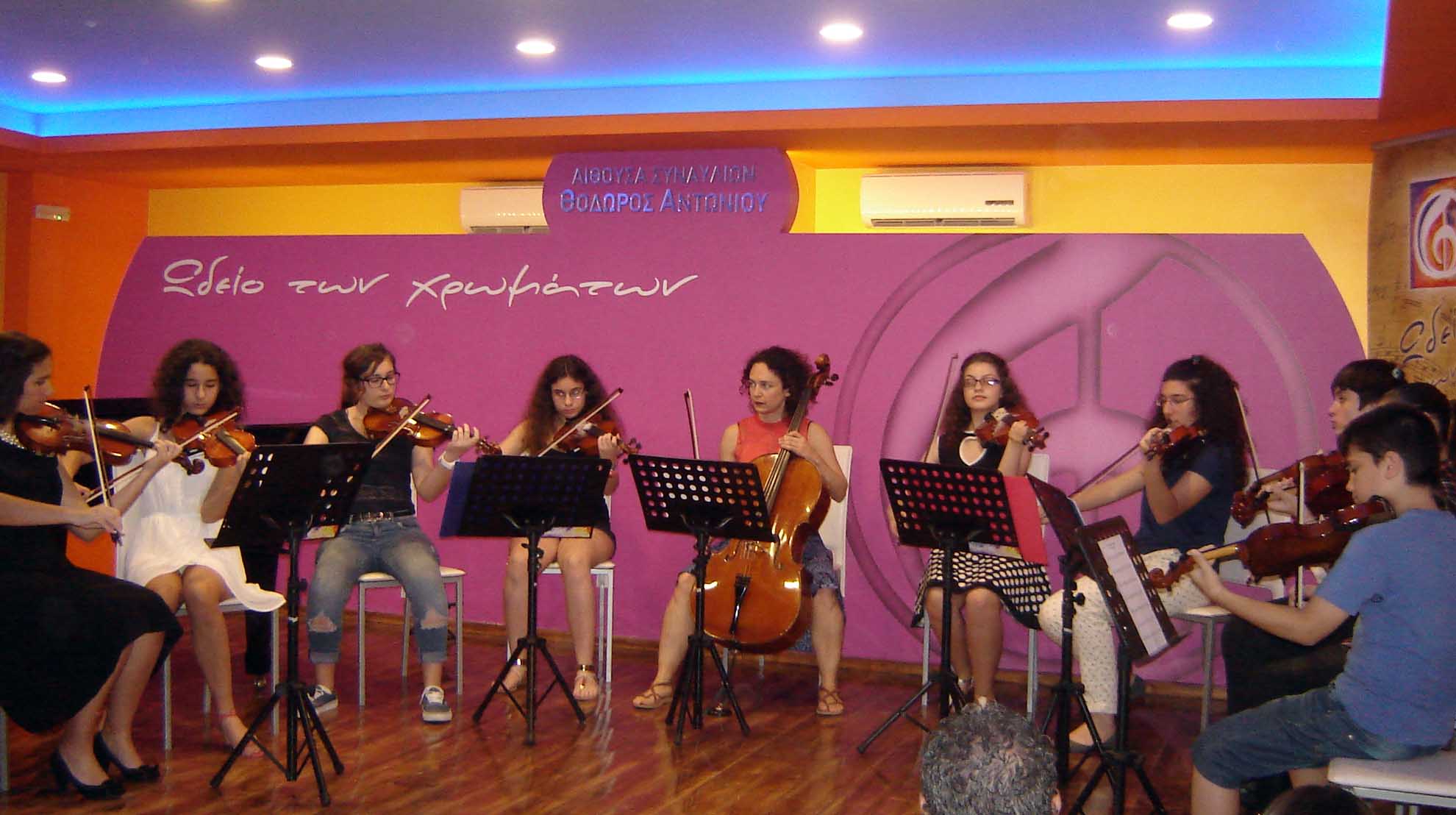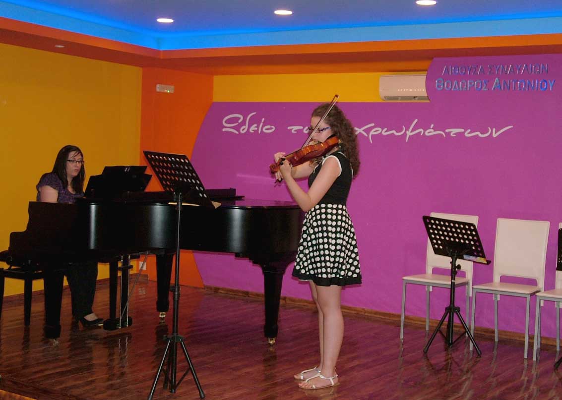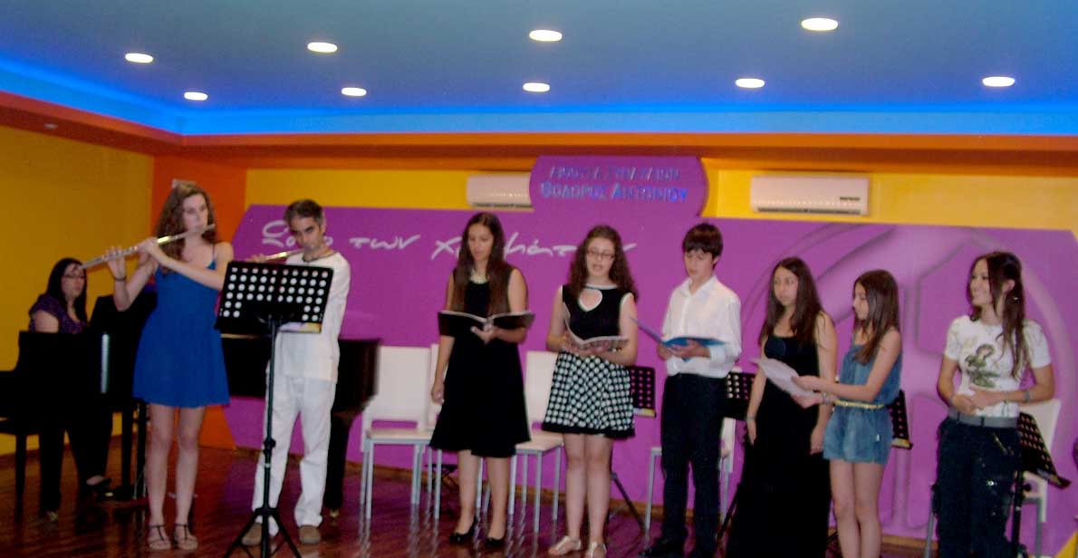 Το Σάββατο 14 Ιουνίου 2014, στις 20:00, πραγματοποιήθηκε η 2η καλοκαιρινή Συναυλία, στην μεγάλη αίθουσα Συναυλιών του "Ωδείου των χρωμάτων", με τους μαθητές & τις μαθήτριες των κ. Ηρακλή Θανάση - Βιολί/Μουσικά Σύνολα Εγχόρδων, κ. Σοφίας Ευκλείδου - Βιολοντσέλο, κ. Εύας Θανάση - Φωνητική, κ. Αλέξανδρου Γιαννή - Σαξόφωνο και κ. Μάνο Παναγιωτάκη - επιμέλεια Μουσικού Συνόλου. |