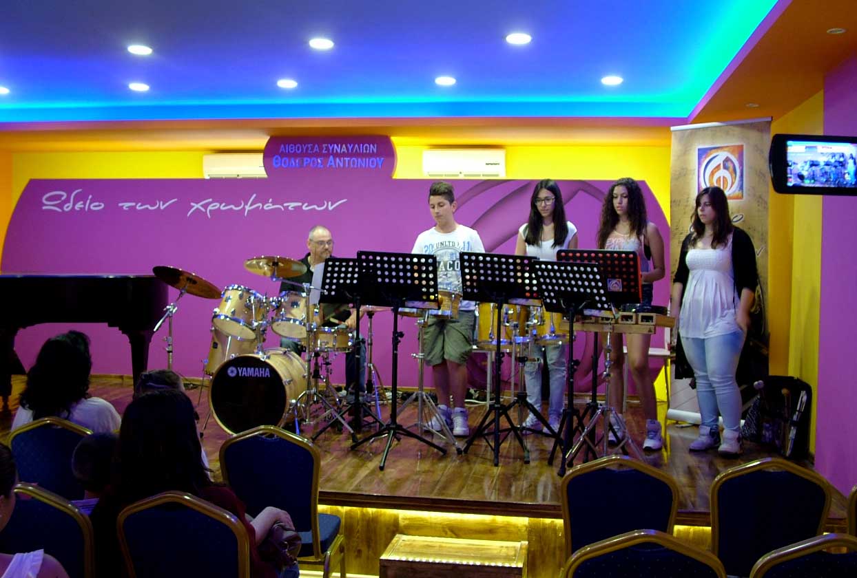 Την Πέμπτη 19 Ιουνίου 2014 και ώρα 18:00, πραγματοποιήθηκε η 7η καλοκαιρινή Συναυλία του "Ωδείου των χρωμάτων", στην μεγάλη αίθουσα Συναυλιών "ΘΟΔΩΡΟΣ ΑΝΤΩΝΙΟΥ", με μαθητές & μαθήτριες των κ. Γιάννη Παξιμαδάκη - ΜΠΟΥΖΟΥΚΙ, κ. Βαγγέλη Τσαγκαράκη - ΕΥΡΩΠΑΪΚΑ ΚΡΟΥΣΤΑ, και κ. Μιχάλη Πατραμάνη - ΗΛΕΚΤΡΙΚΗ ΚΙΘΑΡΑ.