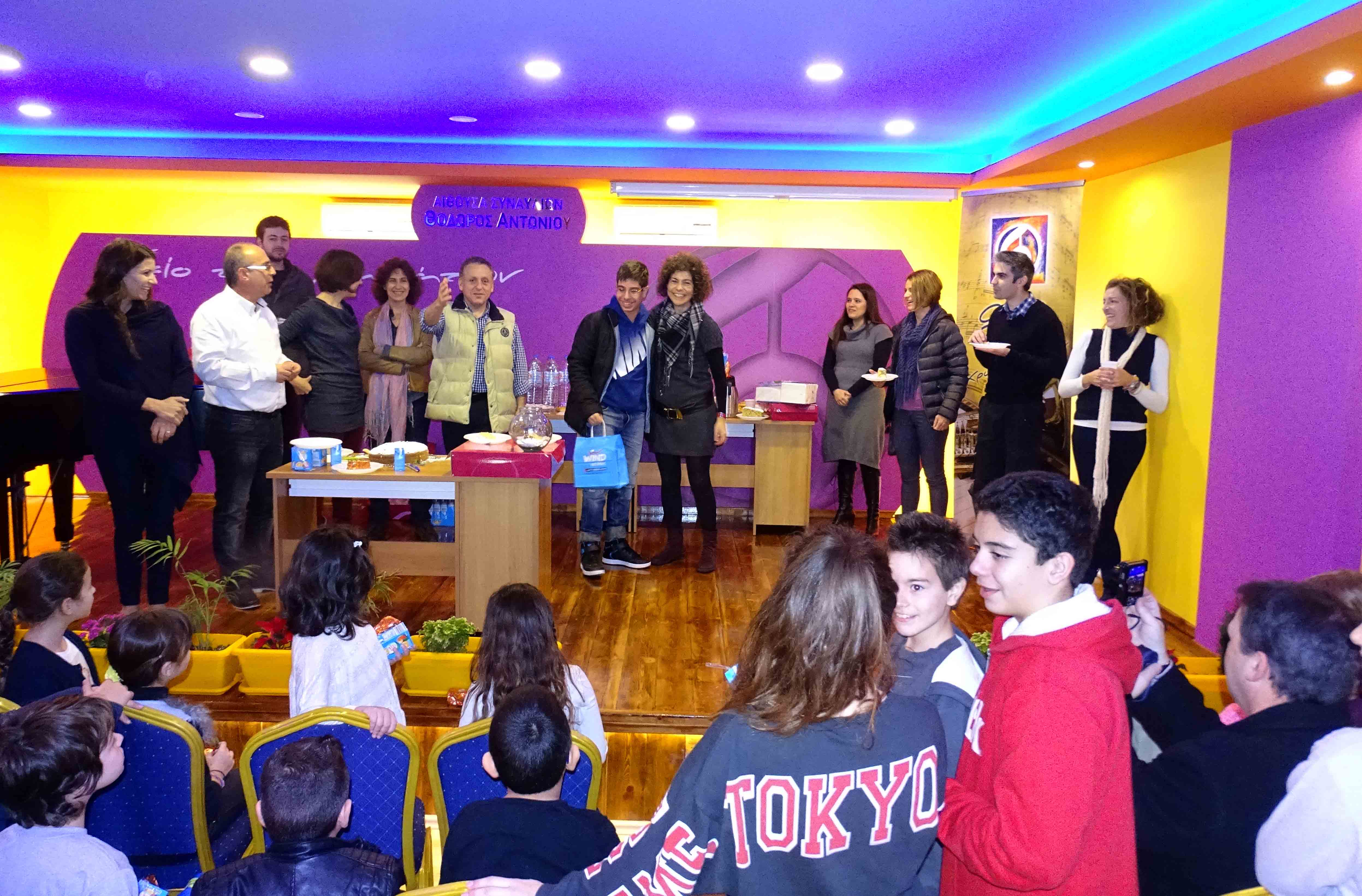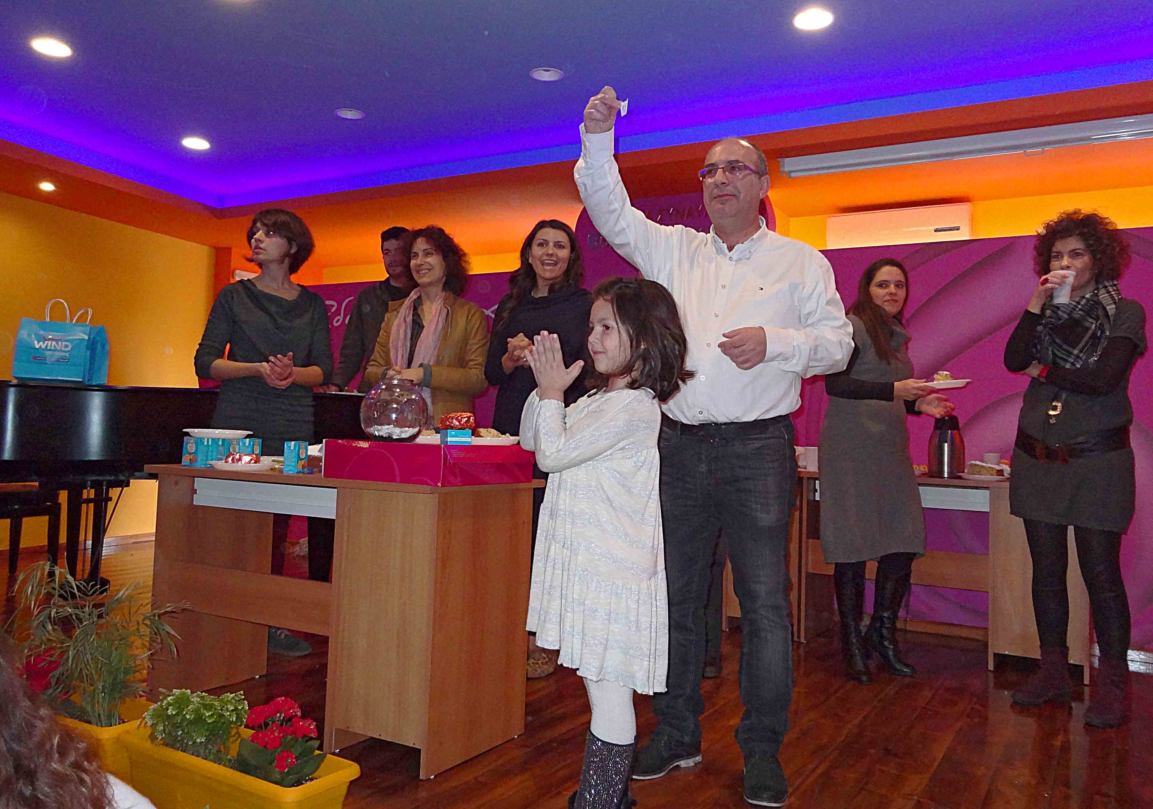 Mέσα σε εορταστική ατμόσφαιρα, την Κυριακή 18 Ιανουαρίου 2015 γεμάτη χαρούμενους μαθητές, γονείς, καθηγητές έγινε η κοπή της Πρωτοχρονιάτικης πίτας του "Ωδείου των χρωμάτων"! Οι μαθητές, μικροί και μεγάλοι, αρκετοί γονείς και καθηγητές, βρέθηκαν κοντά μας την Κυριακή το πρωϊ, αντάλλαξαν ευχές για τη νέα χρονιά, μοιράστηκαν τα νέα τους και παρακολούθησαν με αγωνία την κλήρωση για τα 2 Πρωτοχρονιάτικα Δώρα από το Ωδείο μας: 2 Tablets! Και του χρόνου σε όλους σας! Να έχετε μία Καλή & Δημιουργική χρονιά! |