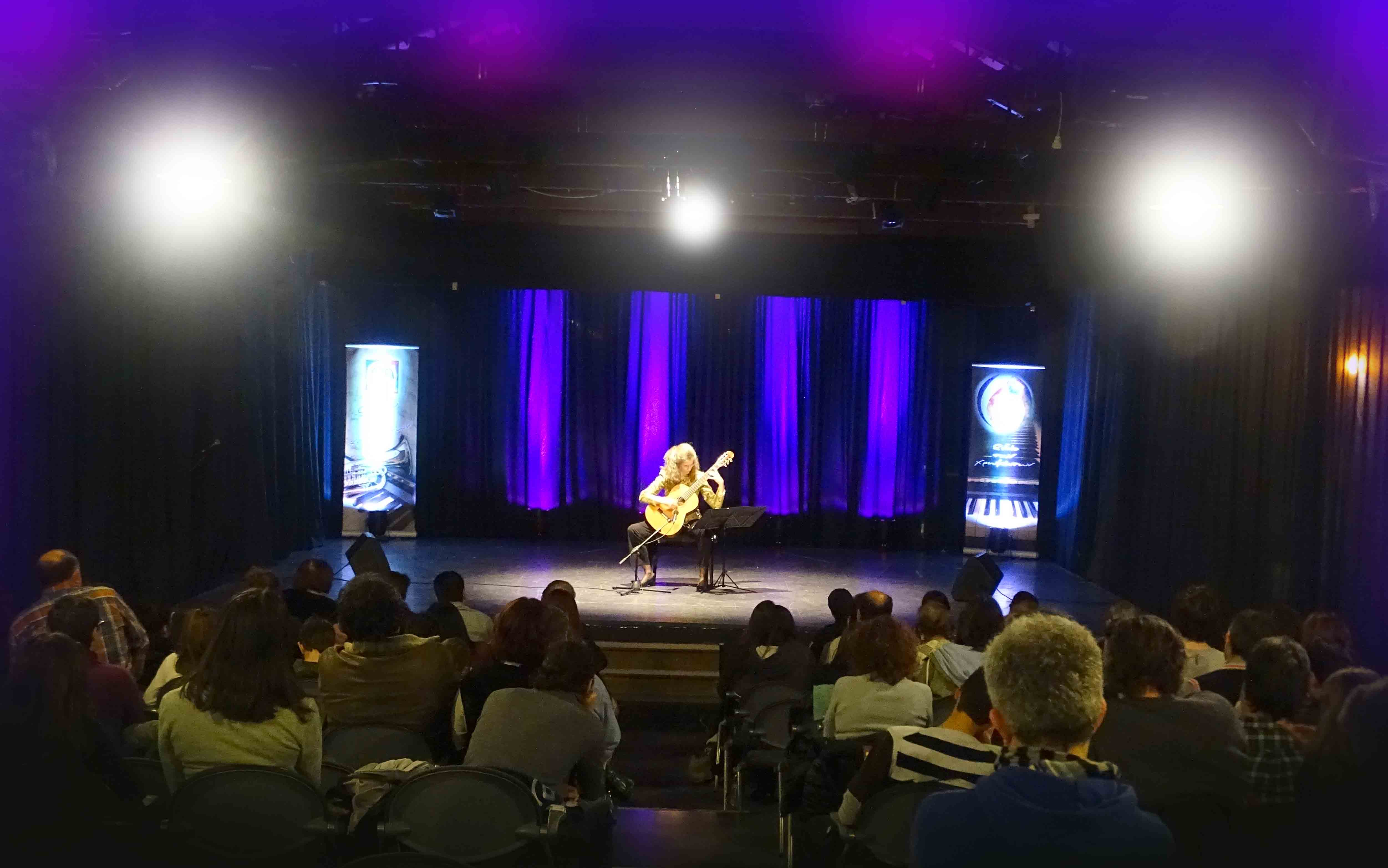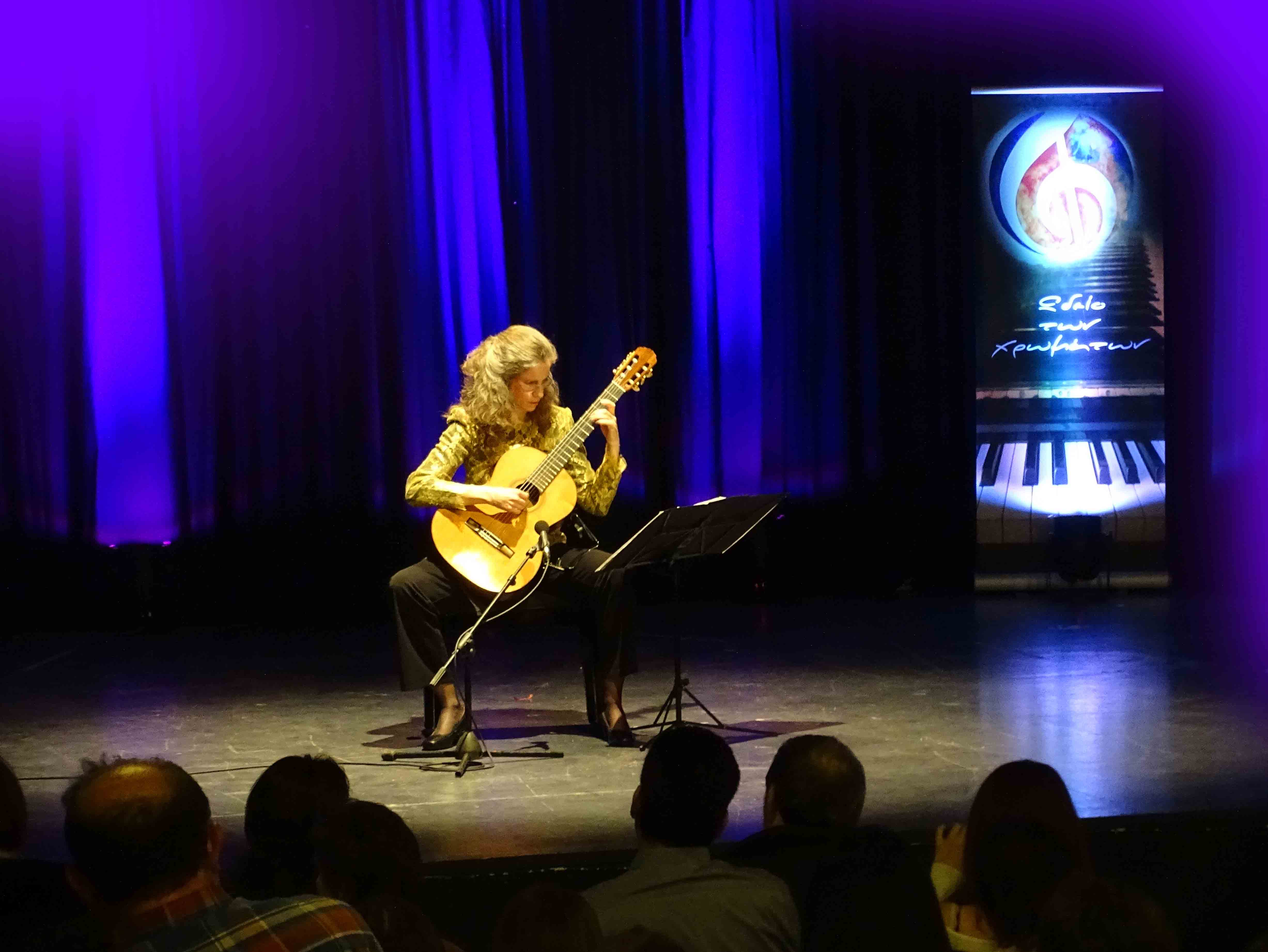 Με μεγάλη επιτυχία πραγματοποιήθηκε στο ΘΕΑΤΡΙΚΟ ΣΤΑΘΜΟ ΗΡΑΚΛΕΙΟΥ, την Παρασκευή 6 Φεβρουαρίου 2015, το ΡΕΣΙΤΑΛ ΚΙΘΑΡΑΣ της διεθνούς φήμης Σολίστ ΕΛΕΝΑΣ ΠΑΠΑΝΔΡΕΟΥ, καλεσμένης του "Ωδείου των χρωμάτων", για πρώτη φορά στο Ηράκλειο! Μέσα στη γεμάτη αίθουσα του Θεατρικού Σταθμού Ηρακλείου, το κοινό, που αποτελούνταν από μικρούς και μεγαλύτερους σπουδαστές κιθάρας, από καθηγητές του "Ωδείου των χρωμάτων" & από άλλα Ωδεία, αλλά ακόμα και από απλούς φιλόμουσους ακροατές, καταχειροκρότησε την κυρία Έλενα Παπανδρέου, απολαμβάνοντας μία μουσική ερμηνεία εξαιρετικά υψηλού επιπέδου. |