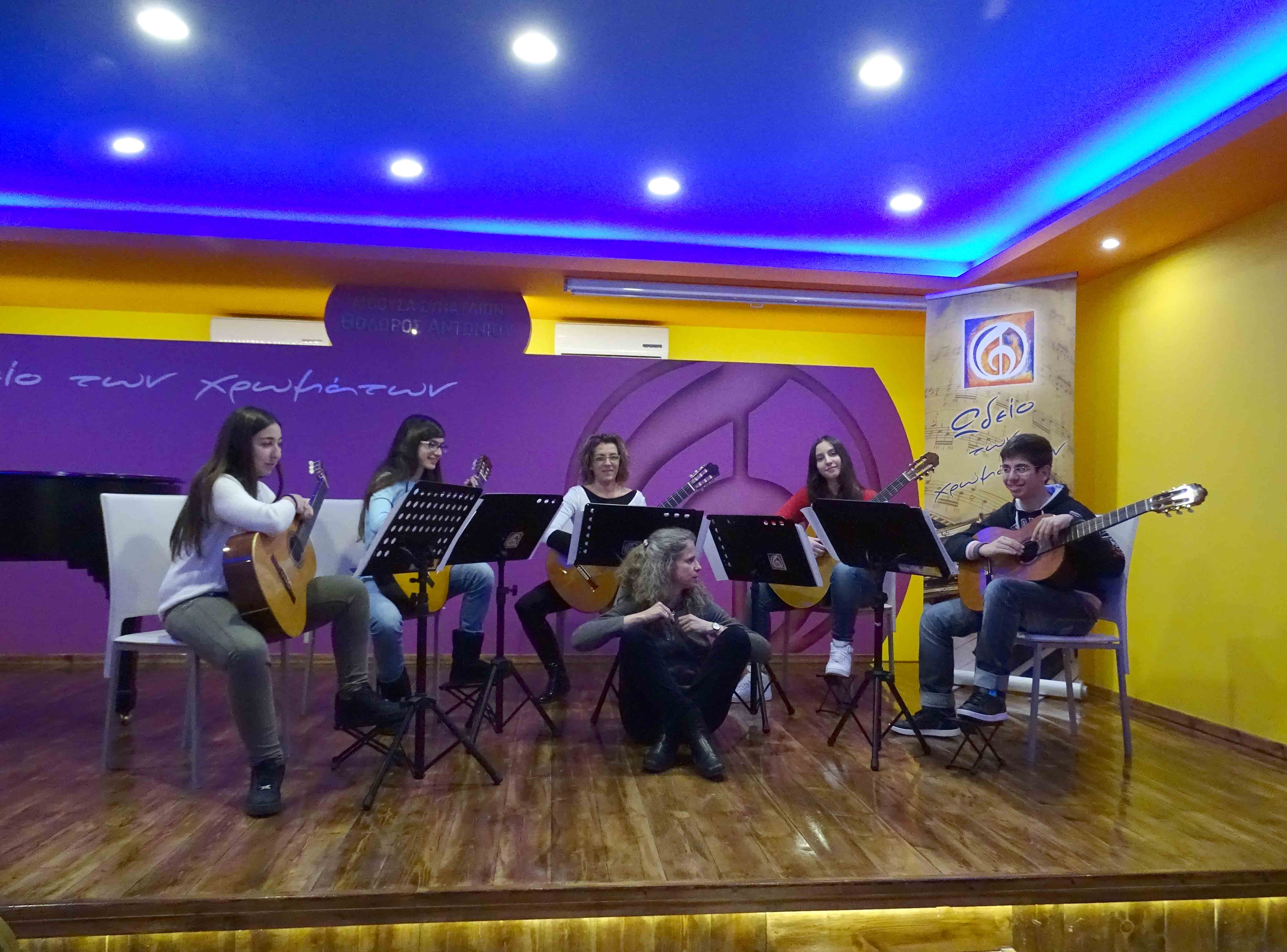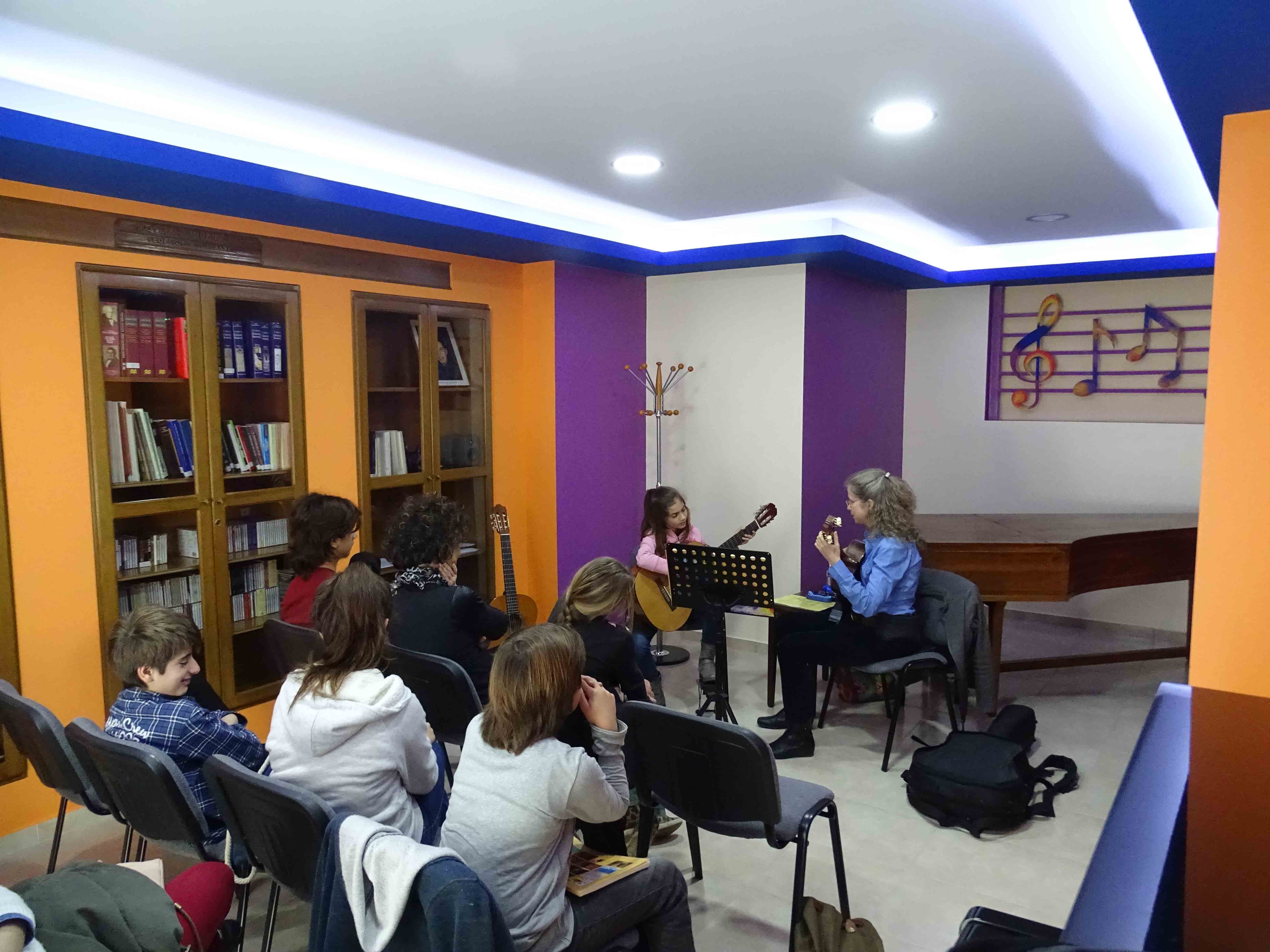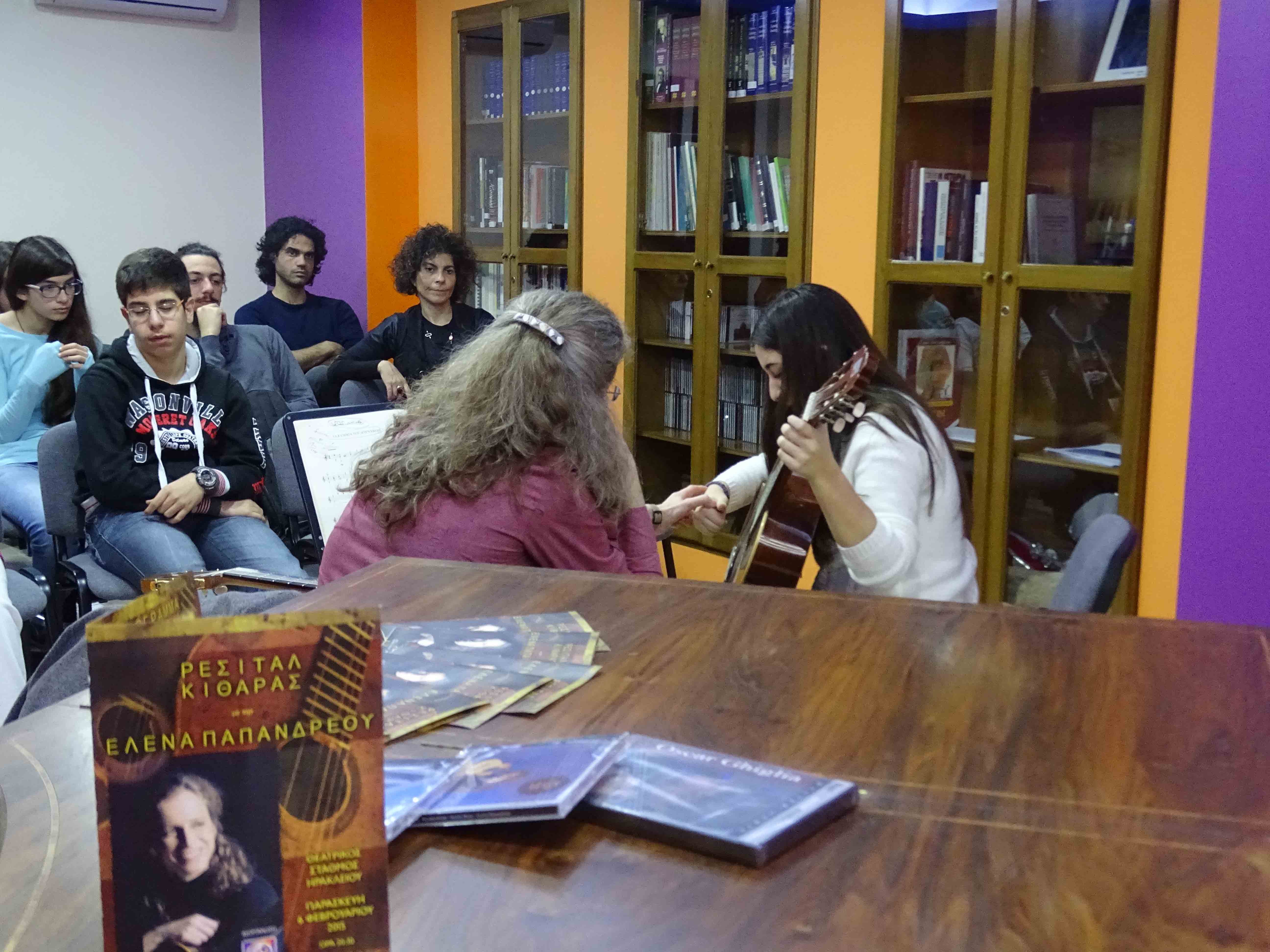 Το ΣΕΜΙΝΑΡΙΟ ΚΙΘΑΡΑΣ, με την Διεθνούς φήμης Σολίστ Κιθάρας ΕΛΕΝΑ ΠΑΠΑΝΔΡΕΟΥ, πραγματοποιήθηκε στην Αίθουσα Σεμιναρίων στο "Ωδείο των χρωμάτων", το Σάββατο 7 και την Κυριακή 8 Φεβρουαρίου 2015, με μεγάλη συμμετοχή και επιτυχία. Συμμετέχοντες σπουδαστές κιθάρας, από το "Ωδείο των χρωμάτων" αλλά και από άλλα Ωδεία του Ηρακλείου και της υπόλοιπης Κρήτης, συμμετείχαν όλοι τους ενεργά, παρουσίασαν τα κομμάτια τους, άκουγαν προσεκτικά την Έλενα Παπανδρέου και όσα παρατηρούσε ή σχολίαζε γύρω από το παίξιμό τους, γνωρίστηκαν μεταξύ τους ανταλλάζοντας απόψεις και φυσικά πλούτισαν τις γνώσεις τους, γύρω από την ΚΙΘΑΡΑ, την τεχνική της και τη ΜΟΥΣΙΚΗ. |