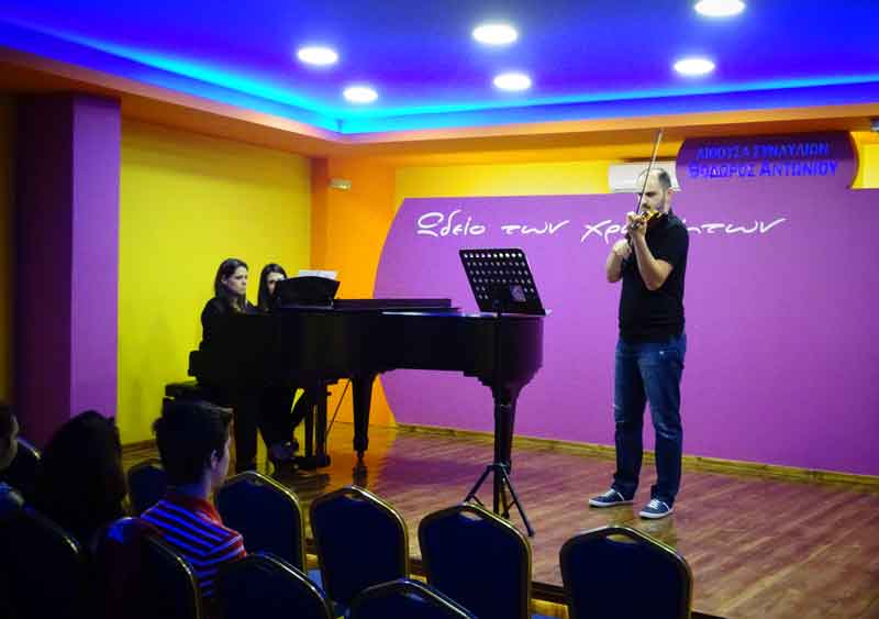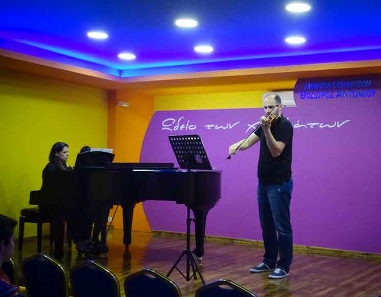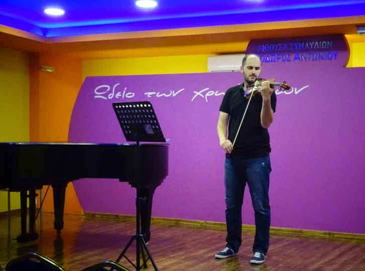 Την ΚΥΡΙΑΚΗ 31 ΜΑΪΟΥ 2015 και ώρα 20:00, στην Αίθουσα Συναυλιών "ΘΟΔΩΡΟΣ ΑΝΤΩΝΙΟΥ", το "Ωδείο των χρωμάτων" παρουσίασε μία Συναυλία για ΒΙΟΛΙ & ΠΙΑΝΟ, με έργα κλασσικού ρεπερτορίου. Στο ΒΙΟΛΙ, ο σπουδαστής του "Ωδείου των χρωμάτων" ΓΙΩΡΓΟΣ ΚΟΥΡΟΥΠΗΣ και στο ΠΙΑΝΟ η καθηγήτρια του "Ωδείου των χρωμάτων" ΧΡΙΣΤΙΝΑ ΜΕΤΟΧΙΑΝΑΚΗ, παρουσίασαν έργα των Bach, Rode, Schumann, Bach, Mozart & Mendelssohn. Πρόσκληση για όλους τους μουσικόφιλους! Η είσοδος ήταν φυσικά ΕΛΕΥΘΕΡΗ. Ευχαριστούμε όλους όσους τίμησαν τη Συναυλία αυτή με την παρουσία τους. Θερμά συγχαρητήρια στον σπουδαστή μας ΓΙΩΡΓΟ ΚΟΥΡΟΥΠΗ! Ευχαριστούμε και την καθηγήτρια του "Ωδείου των χρωμάτων" ΧΡΙΣΤΙΝΑ ΜΕΤΟΧΙΑΝΑΚΗ για τη συμμετοχή της! |